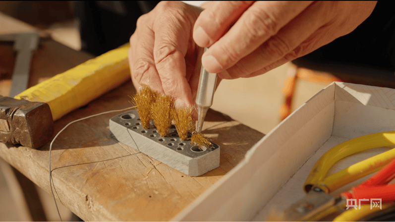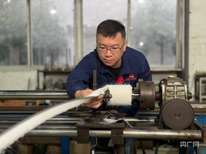 胡爽在車間制作工業(yè)拋光刷(央廣網記者 劉暢司晨 攝)