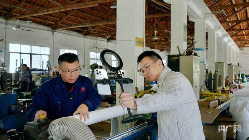 “刷三代”胡志新手持直播設備,在車間里邊走邊講,屏幕那頭訂單不斷跳動。鏡頭一轉,他的父親胡爽——在兒子的引導下向觀眾打起招呼。這生動的一幕,恰是今日源潭迎接數字浪潮的縮影。